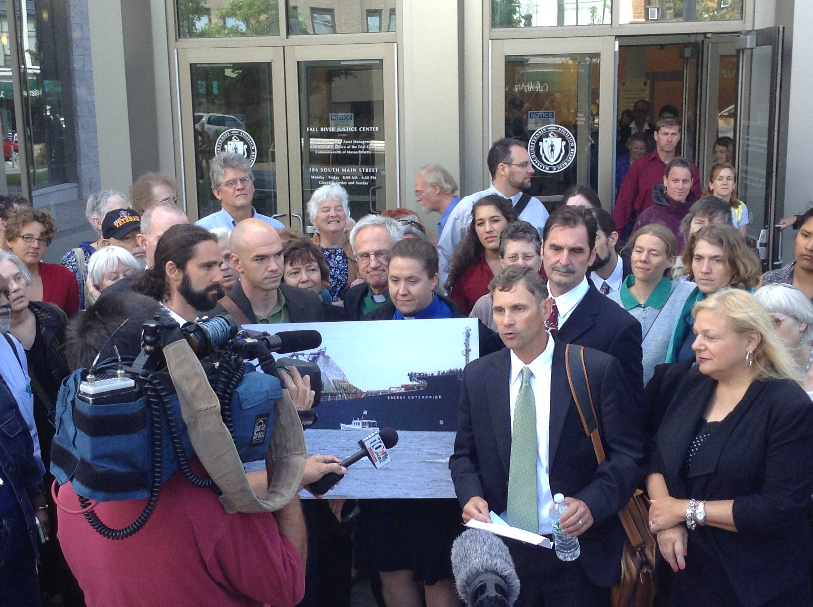 Esta mañana, el fiscal de distrito del condado de Bristol, Sam Sutter, retiró los cargos de conspiración y redujo las causas interpuestas contra Ken y Jay a otras infracciones civiles, diciendo que veía la necesidad de asumir un papel de liderazgo en materia de cambio climático. Se refirió al cambio climático como “una de las crisis más graves que nuestro planeta jamás haya enfrentado” y le dijo a una multitud jubilosa que se uniría a ellos en la Marcha Popular Sobre el Clima (el “People’s Climate March”) en la ciudad de Nueva York en dos semanas.